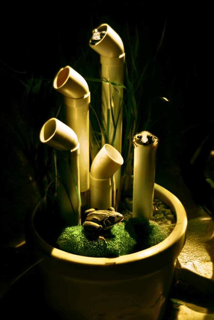 Group the pipes together in clusters — the variety helps both small and large frogs choose a snug hiding spot.