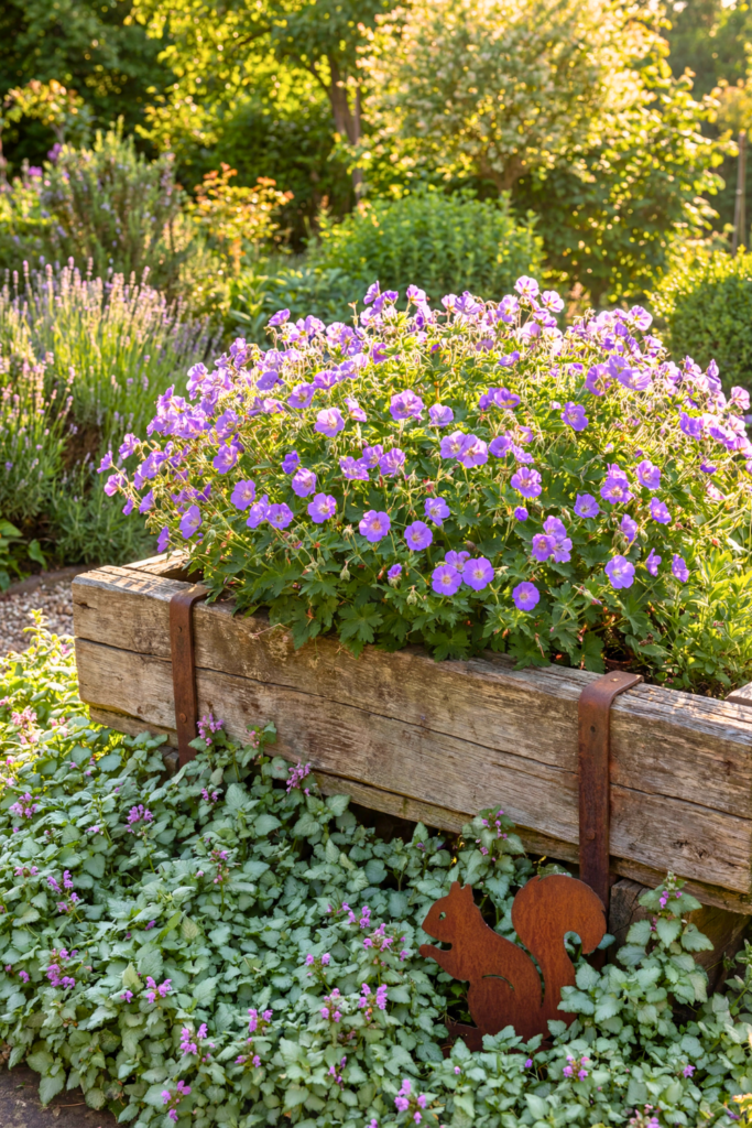 While Baptisia is a structural anchor, the Hardy Geranium is the ultimate “social butterfly” of the garden. It doesn’t stand tall; instead, it mounds and weaves through other plants, covering bare soil and suppressing weeds with a dense carpet of violet-blue flowers.