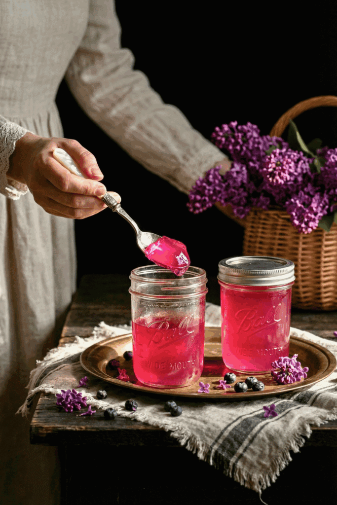 Color: Dark purple lilacs give the most vivid jelly. For pale or white varieties, a few frozen blueberries during steeping adds beautiful color without changing the flavor.