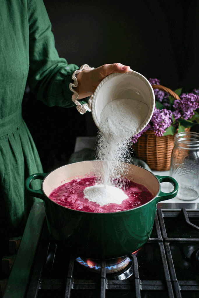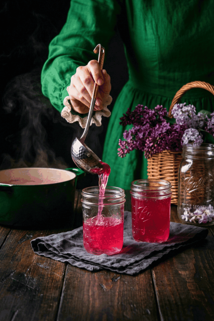 One very important thing: always add the pectin first and dissolve it before the sugar goes in. The pectin needs to hydrate in the liquid before sugar competes for that same water. If you reverse the order, your jelly may refuse to set, and you’ll have a beautiful lilac syrup instead of jelly. (Which is honestly also delicious, but that’s beside the point.)