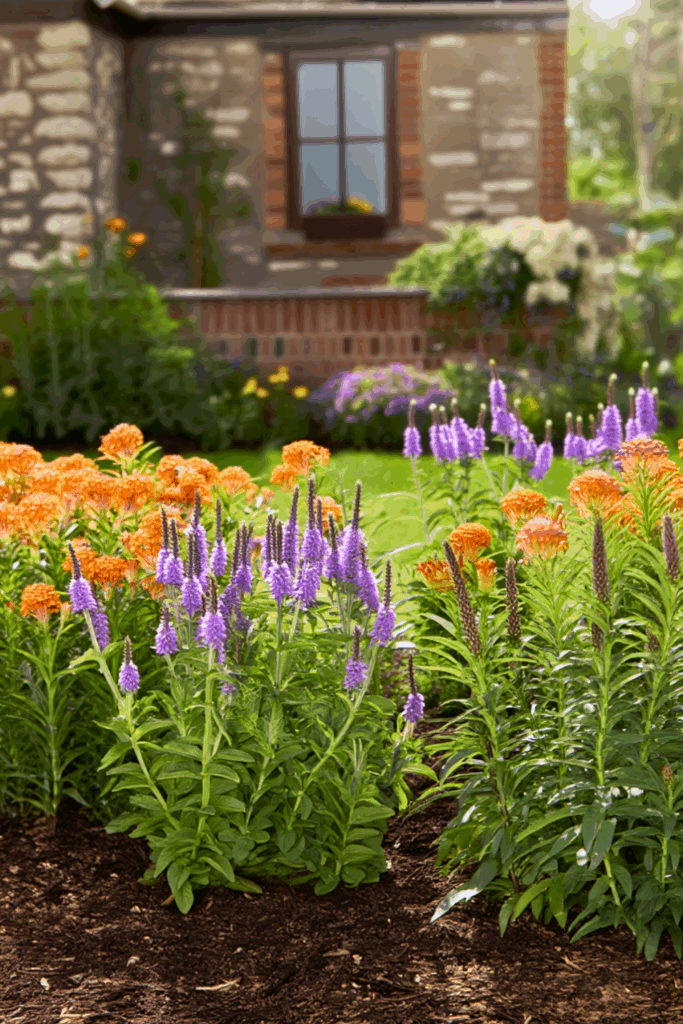 Few perennials match the color play and perfume of Agastache rupestris. Its slender spikes open in brilliant shades of orange, coral, and rose, fading to smoky mauve as the season cools. The gray-green, aromatic foliage releases a minty-citrus scent in the heat, turning every breeze into a moment of freshness. Even at the height of summer drought, it stays upright and alive with motion—visited constantly by hummingbirds and native bees.