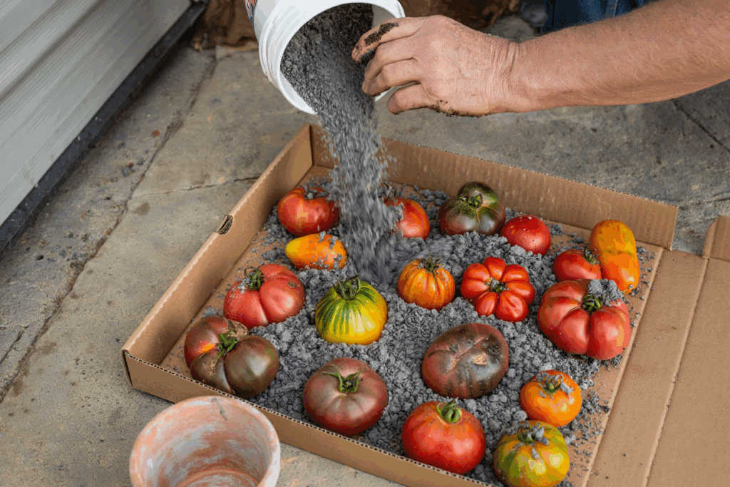 - Inspect the box occasionally: If the ash starts to feel moist, swap it out for fresh, dry ash to keep the tomatoes protected.